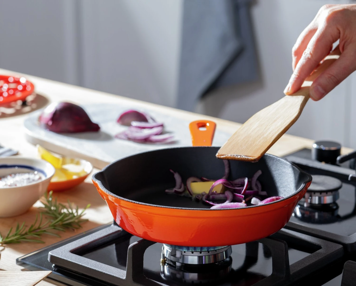 Your handy kitchen helper. Our smart little cast iron frying pan will rustle up everything from breakfast eggs to supper sausages. It spreads heat evenly and retains it longer for a more even cook. Good to go on any hob, its non-stick coating makes it a dream to clean. Pretty enough to take to the table too. This is fuss free cooking with more than a little country house flair. Want more of the easy cook, easy serve, easy clean of our cast iron frying pan? We've a whole collection of great looking pans and griddles to choose from.