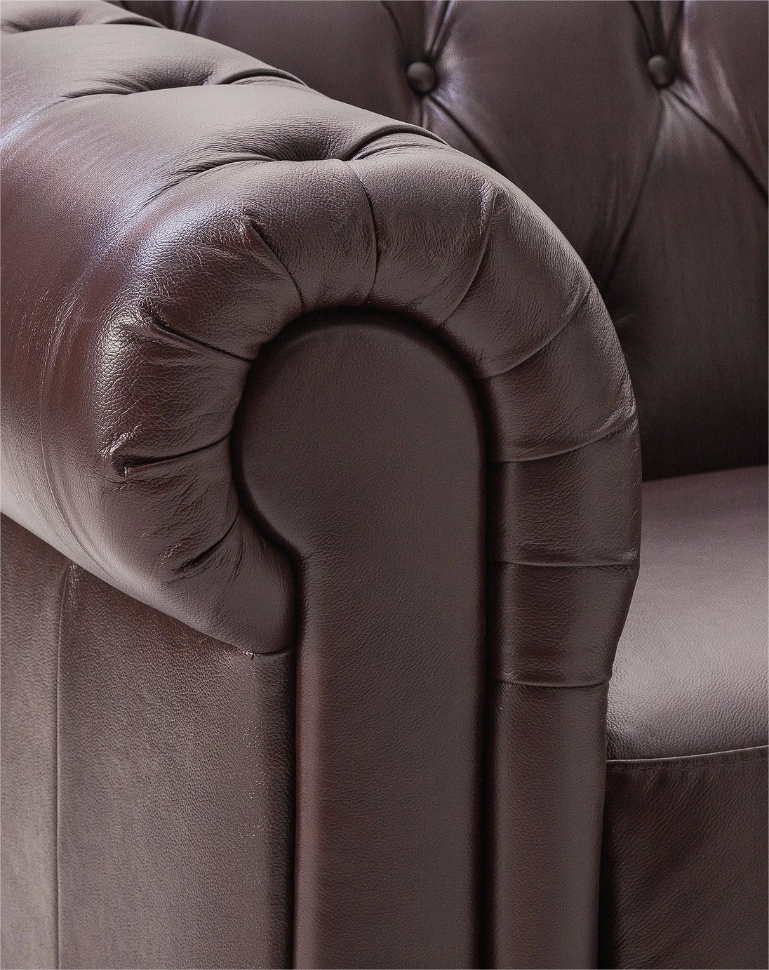 An iconic piece. Classic and timeless, the Habitat Chesterfield 2-seater sofa boasts a scroll arm design with sumptuous deep buttoning on the back panel and arms. It's beautifully upholstered in top grain semi-aniline leather for a truly luxurious feel. It stands on real wood feet for the perfect finishing touch.