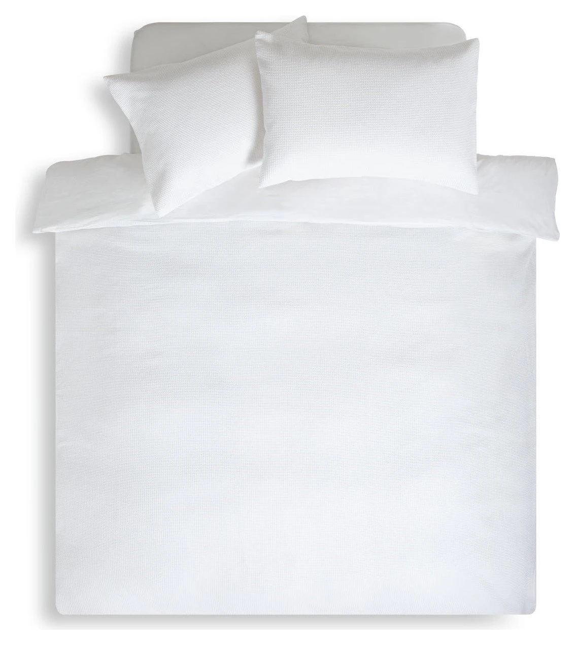 Wonderfully waffly. Create a relaxing bedroom space with our welcoming waffle weave bedding. It's just the job for some dedicated lounging. Made in 100% cotton for a light, easy-care option, this tactile duvet adds a soft layer of sophistication to your room. Fully reversible, choose smooth or textured side up, to suit your mood. Great for good nights and marvellous mornings.