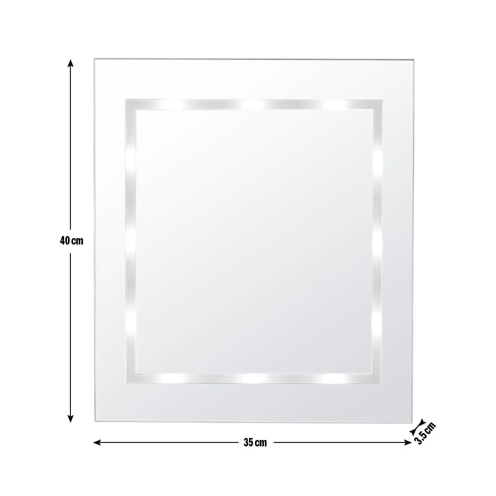 Brighten up those mornings with this battery operated illuminated bathroom mirror. With 12 bulbs inset into the glass, it gives a sleek outline and a practical brightness without the need for wiring or fiddly installation. Just attach it to the wall with the fixings supplied, and you're good to go. Designed specifically for bathroom use, it has an IP44 rating making it suitable for bathroom zones, 2 and outside zones.